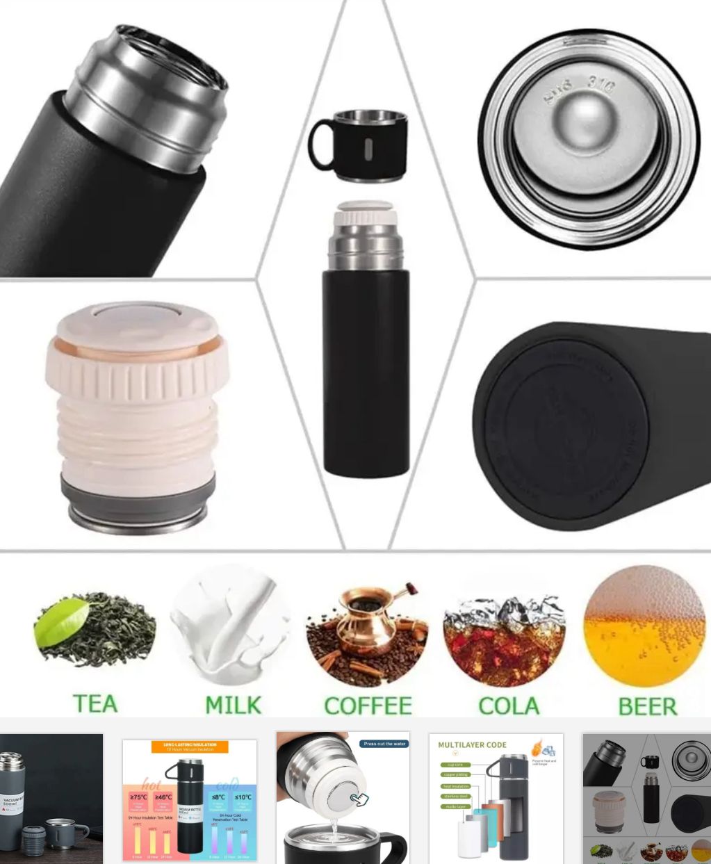 Double walled Vacuum insulated technology keeps beverages cold or hot water bottle, Inner coating for better temperature retention. A uniqueThermal thermal water bottle that makes pouring completely hassle-free and spill-free, rust proof.